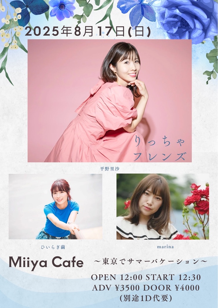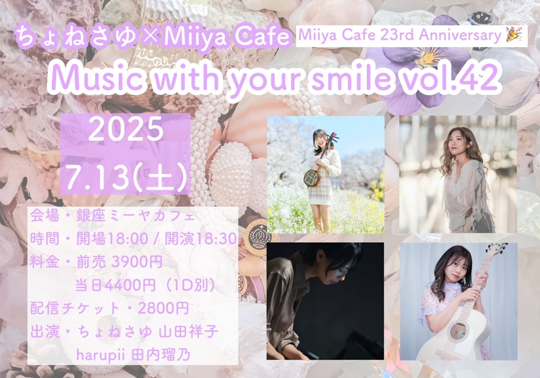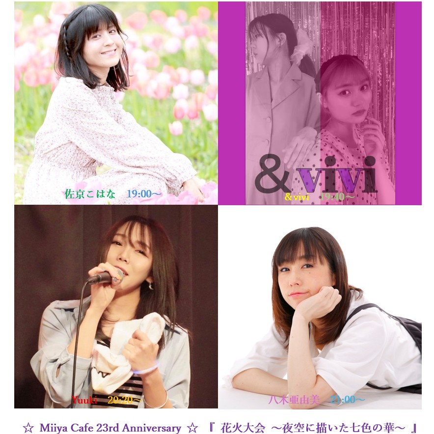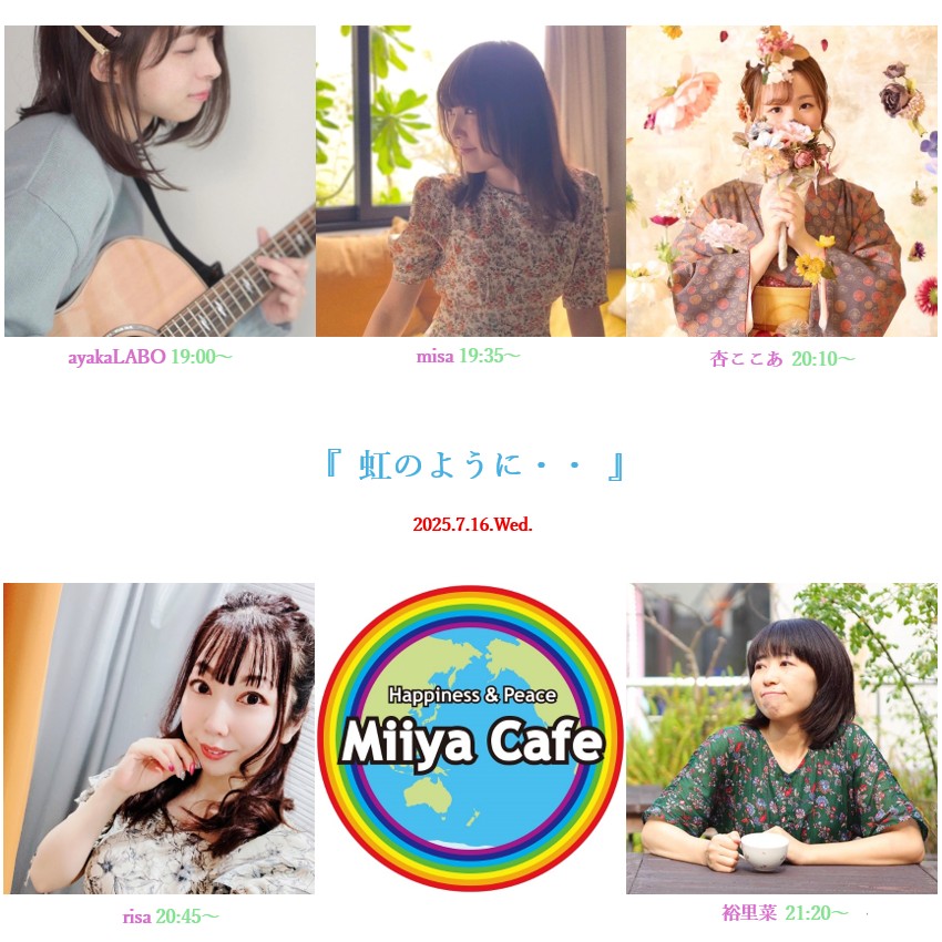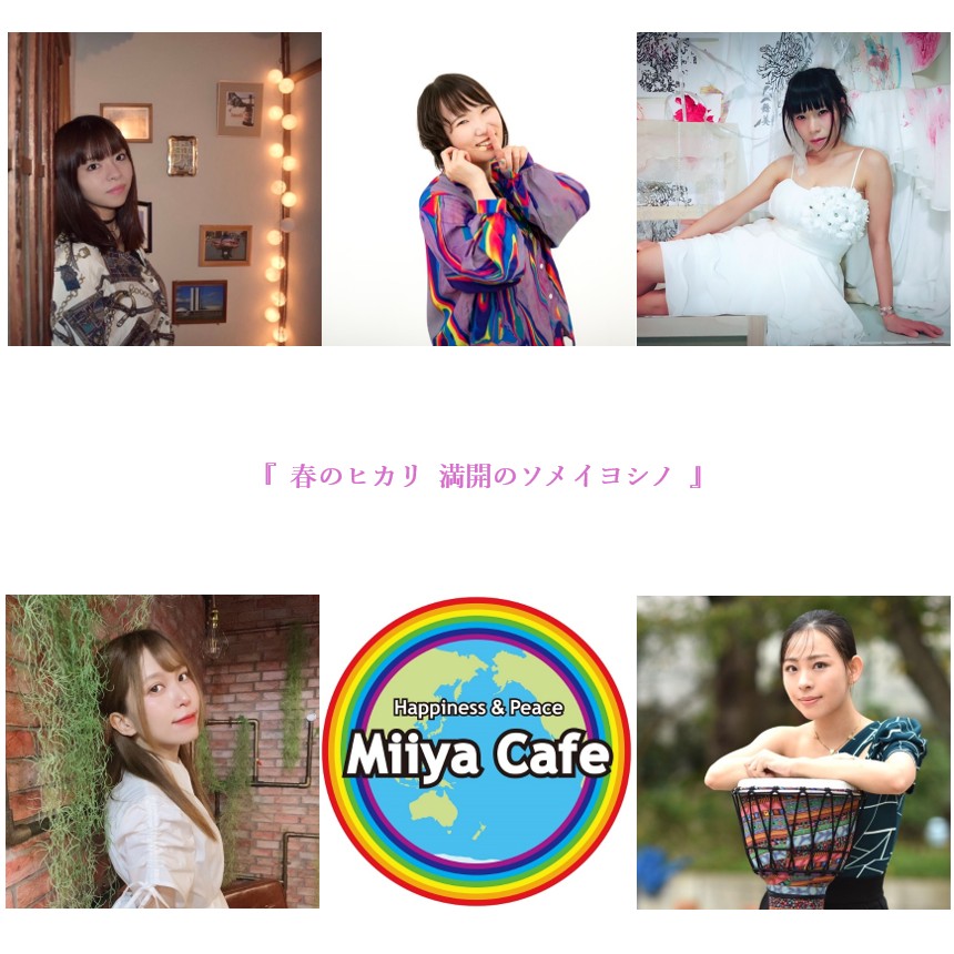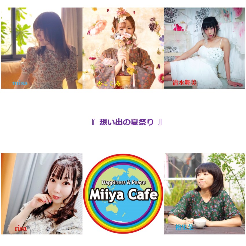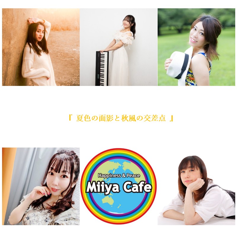 ~ Back to the Miiya Cafe!! ~ これまでたくさんのアーテイストが歌いに、 演奏しに、演じにきてくれました♪ そして、たくさんのお客様にお越しいただき、たくさんの笑顔と幸せの花が咲きました☆ 本当にありがとうございました。心より感謝申し上げます。 想い出のフライヤーを少しずつ掲載します♪