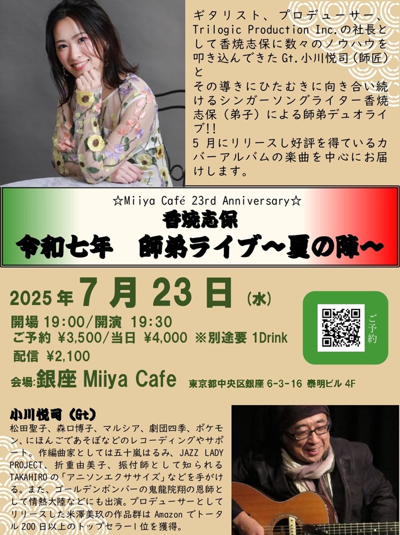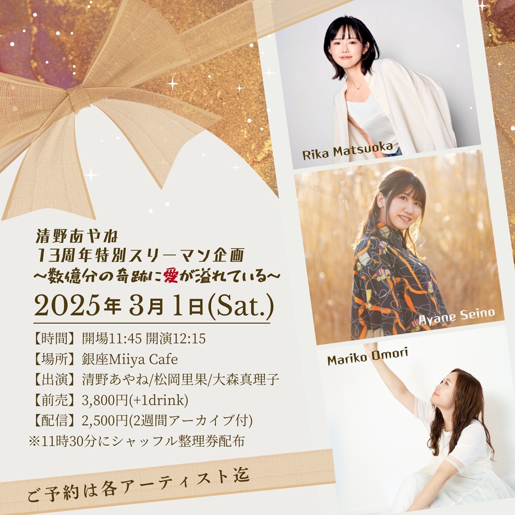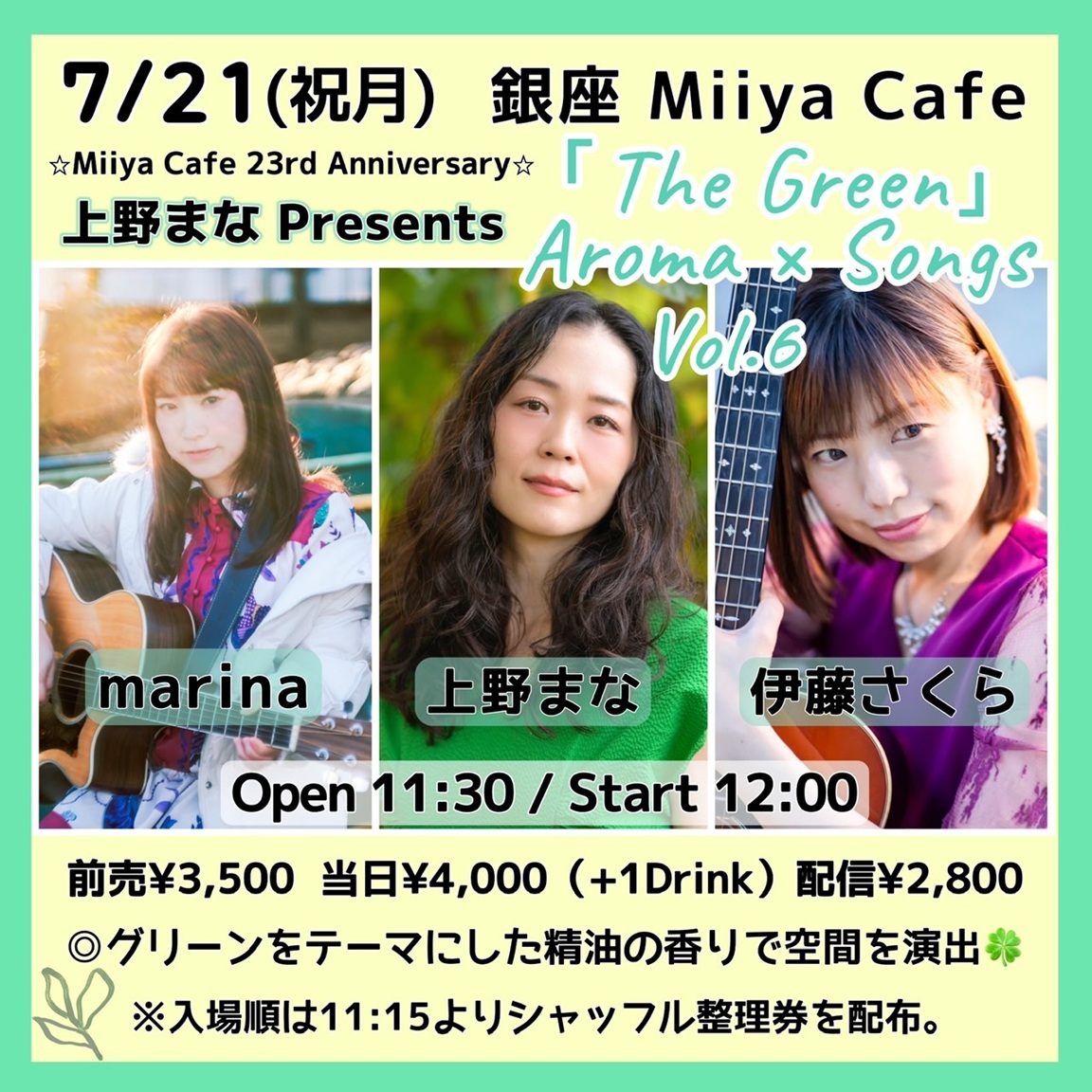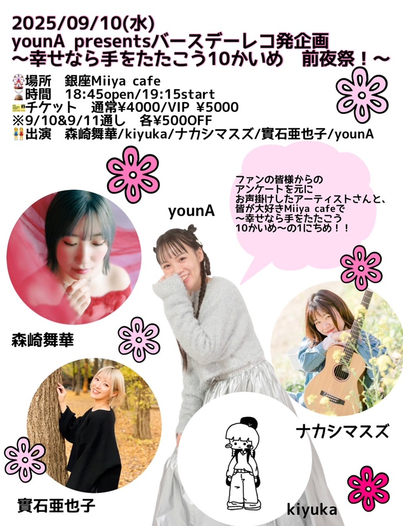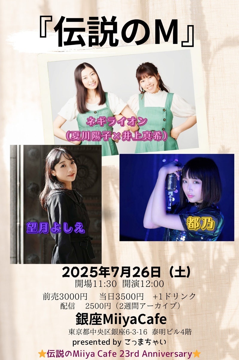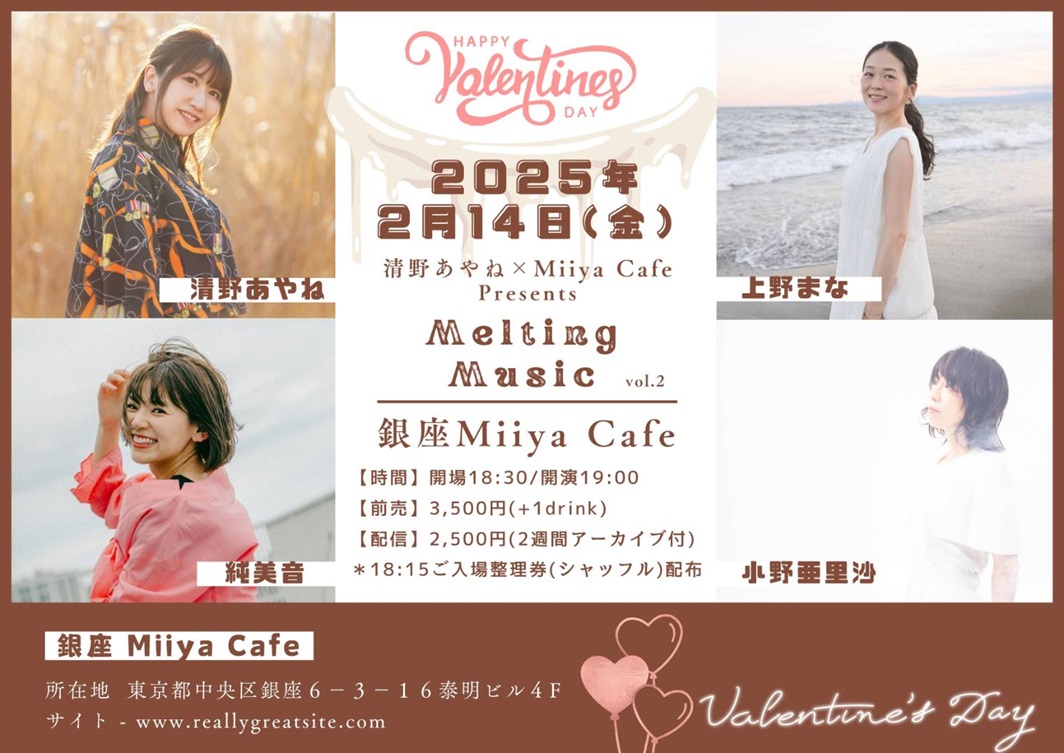 ~ Back to the Miiya Cafe!! ~ これまでたくさんのアーテイストが歌いに、 演奏しに、演じにきてくれました♪ そして、たくさんのお客様にお越しいただき、たくさんの笑顔と幸せの花が咲きました☆ 本当にありがとうございました。心より感謝申し上げます。 想い出のフライヤーを少しずつ掲載します♪