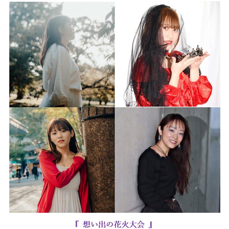 Night Time 有観客+配信 『 想い出の花火大会 』18:30open / 19:00start Charge 前売り・予約 3,400円 / 当日3,900円 【配信チケット】2,500円(税込) ※夏の風物詩「花火」をテーマにお届けするイベントです♪ = 出演 =※来場チケットは、各アーティストさんまで 配信チケットはこちらからアーティスト応援ギフト |