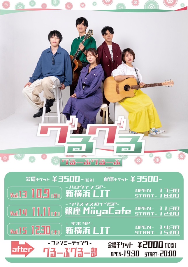 Day Time 有観客+配信 『 グるーぶグるーぶ Vol.14 』11:30open / 12:00start Charge 前売り・予約 3,500円 +drink order(600円) 【配信チケット】3,500円(税込) = 出演 =※来場チケットは、各アーティストさんまで 配信チケットはこちらからアーティスト応援ギフト |
