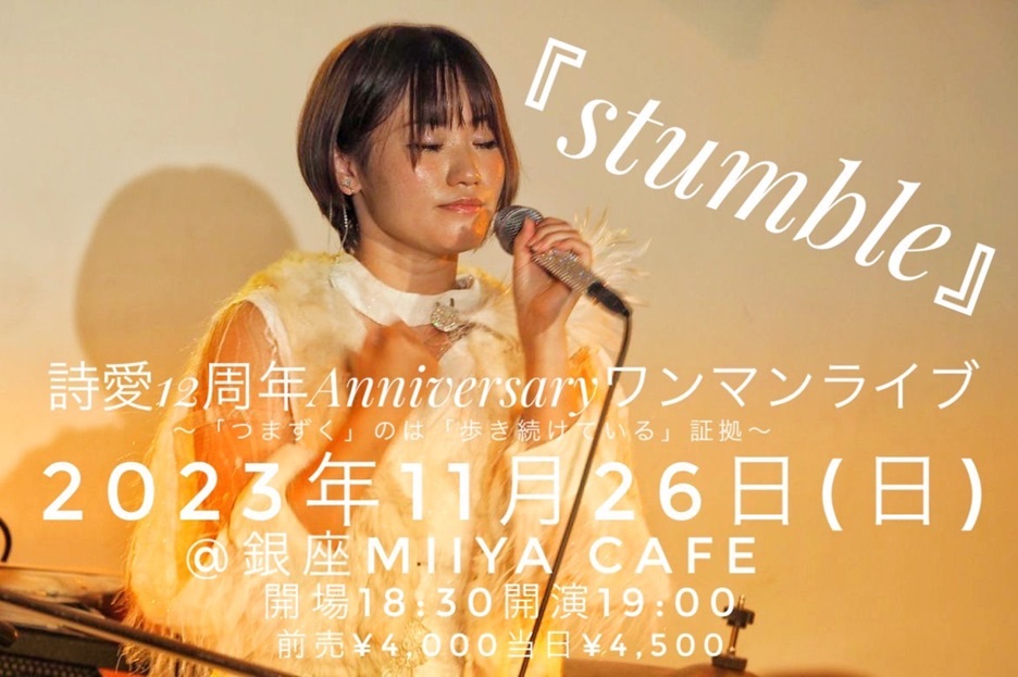 Night Time 有観客+配信 ◤ 詩愛12周年Anniversaryワンマンライブ ◢ 『stumble』〜「つまずく」のは「歩き続けている」証拠〜18:30open / 19:00start Charge 前売り・予約 4,000円/当日 4,500円 【配信チケット】3,000円(税込) ※ 詩愛さんのワンマンライブです♪◉新曲『アンビリカルコード〜へその緒〜』初披露 = 出演 =※来場チケットは、各アーティストさんまで 配信チケットはこちらからアーティスト応援ギフト |