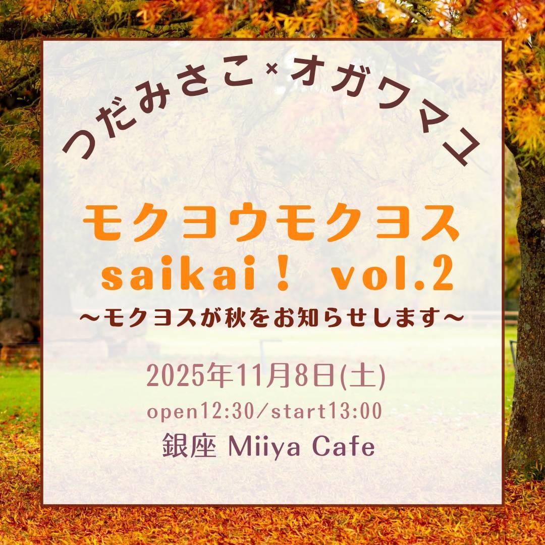 Day Time 有観客+配信 つだみさこ×オガワマユツーマンライブ 『 モクヨウモクヨスsaikai! vol.2~モクヨスが秋をお知らせします~ 』12:30open / 13:00start Charge 前売り・予約 3,600円 / 当日4,000円+drink order(600円) 【配信チケット】2,800円(税込) = 出演 =※来場チケットは、各アーティストさんまで 配信チケットはこちらからアーティスト応援ギフト |